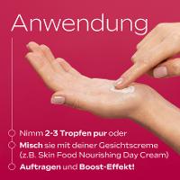 Trage 2-3 Tropfen auf die Haut auf oder mische sie mit deiner Gesichtscreme. Auftragen und Boost Effekt.